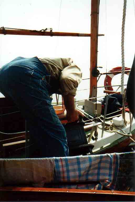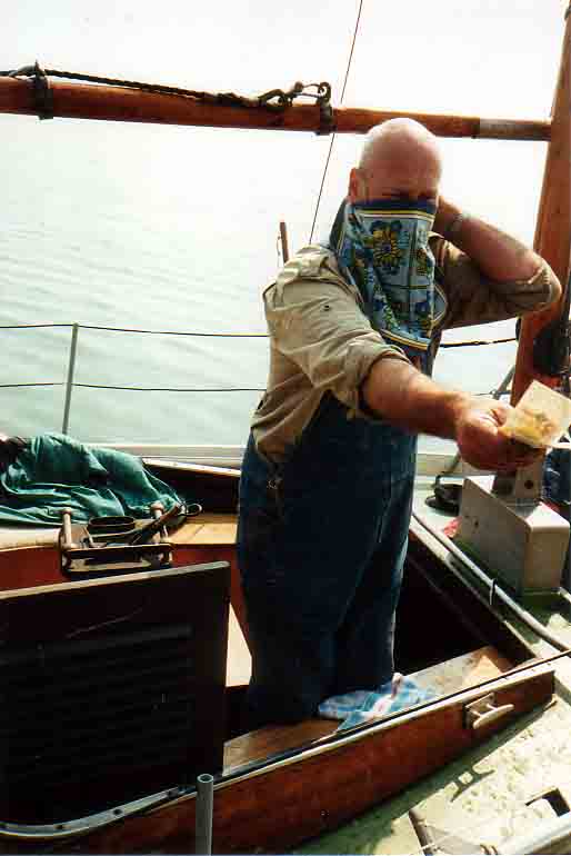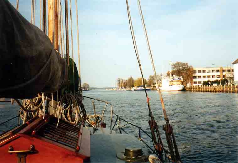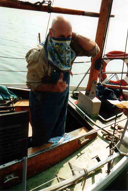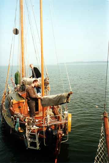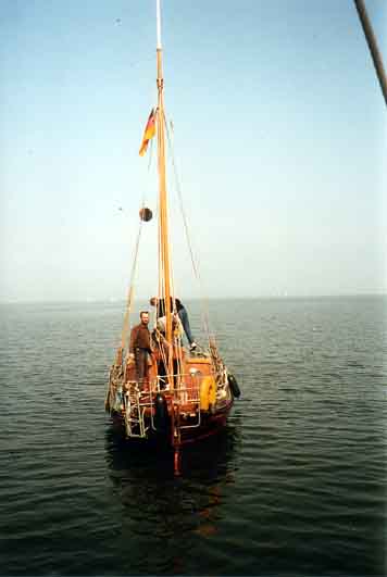 Nach dem wir eine Nacht auf der Dänischen Wiek verbracht haben, kommt Jörg mit seiner Zeese. *** Mannschaft an Deck *** Was jetzt wohl passiert ? *** Erstmal Schluß mit der Gammelei an Bord! |